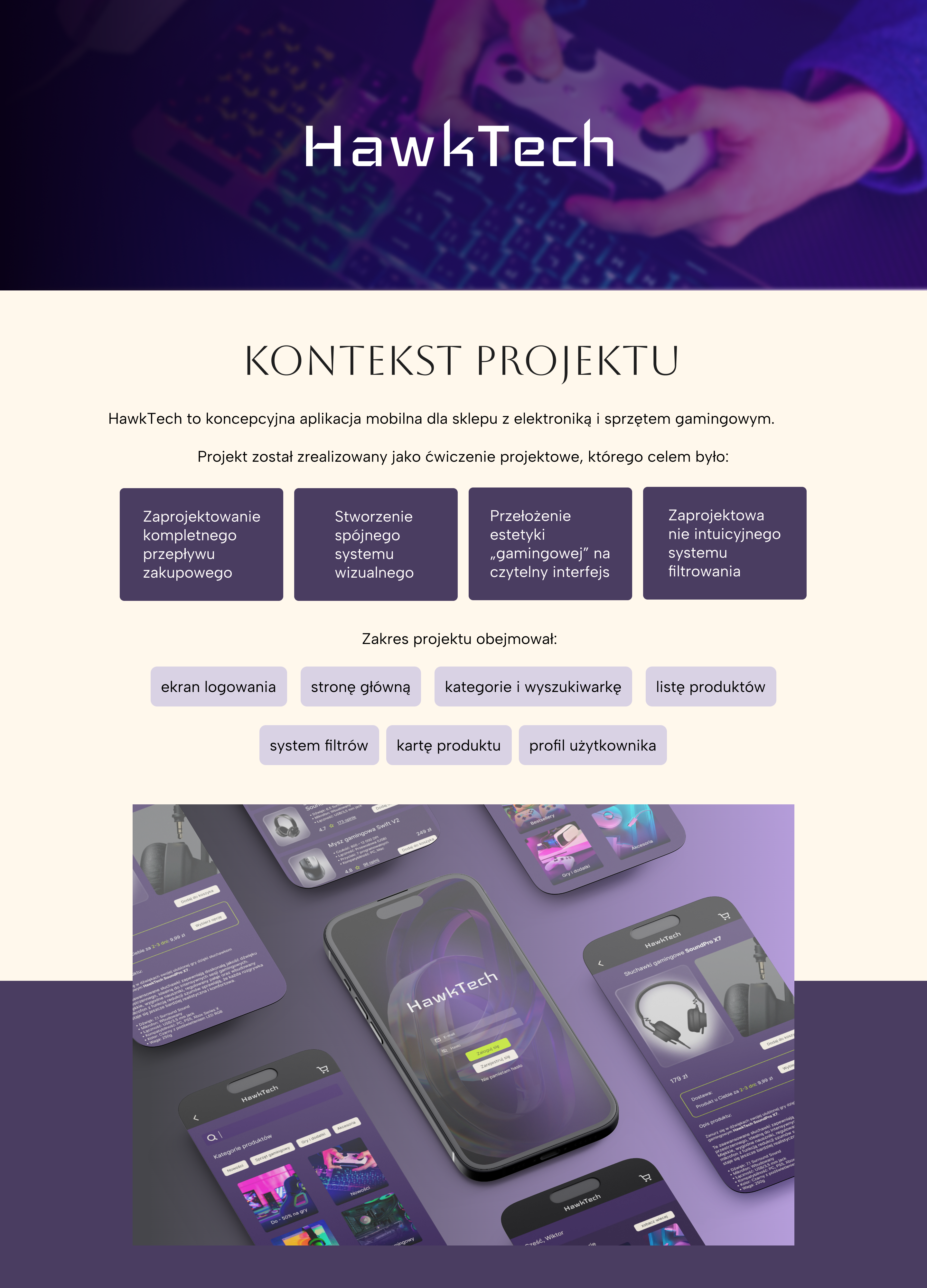 Projekt UX/UI aplikacji e-commerce zaprojektowanej pod szybkie decyzje zakupowe.